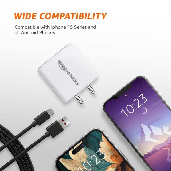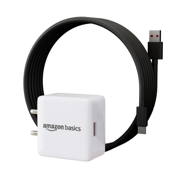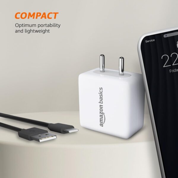 Amazon Basics 22.5W USB-A Charger + Type A to Type C PVC Cable | Fast Charging Wall Adapter (White) with 22.5W Cable Included | Compatible with Oppo, Samsung, Redmi and Hauwei Phones