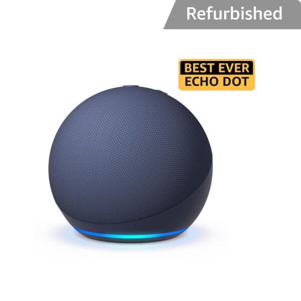 A Certified Refurbished Echo device is refurbished, tested, and certified to look and work like new and comes with the same limited warranty as a new device. 5th (Latest) Generation Echo Dot with Alexa-The best sounding Echo Dot yet! With deeper bass and clearer vocals than all previous generations. Just ask Alexa to play music from Amazon Music, Spotify, Jio Saavn, Apple Music.(some apps may require subscription). Voice control Alexa compatible smart appliances like lights, ACs, TVs, geysers. Extend the experience to non-smart appliances using smart plugs (to be purchased separately). Automatically turn on light when you enter the room or switch on the AC when it gets hot using in-built motion detection and temperature sensor. Set these experiences using routines feature in Alexa app. Manage your day better by just asking Alexa to set reminders, pay bills, add items to shopping list and much more. Alexa can speak English and Hindi. Pause/resume music, snooze alarms, dismiss timers with just a tap.