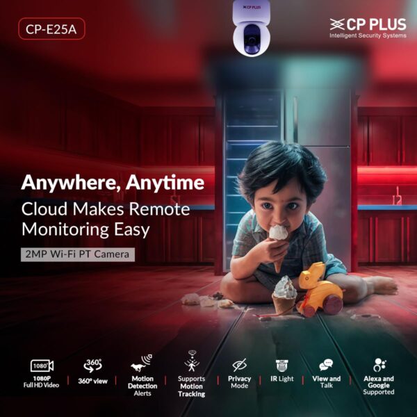 CP PLUS 2MP Full HD Smart Wi-Fi CCTV Home Security Camera | 360° with Pan Tilt | View & Talk | Motion Alert | Night Vision | SD Card (Upto 128 GB), Alexa & Google Support | IR Distance 10mtr | CP-E25A