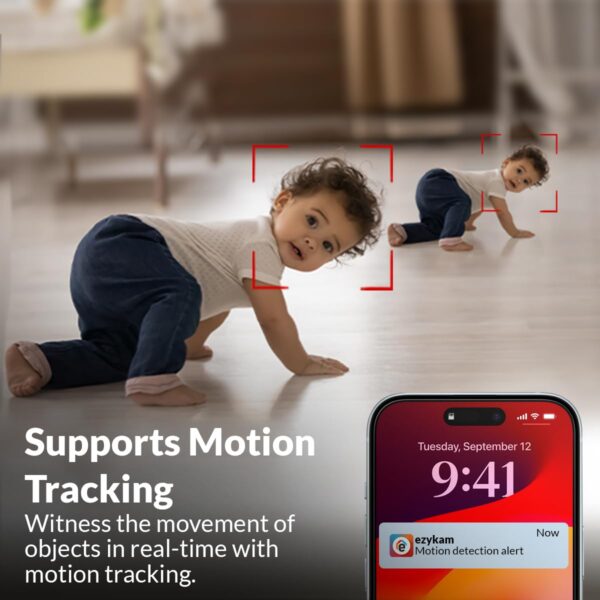The in-built microphone and audio components inside the surveil- lance camera ensure two-way communication. Simply sync the camera with your gadgets and get started.