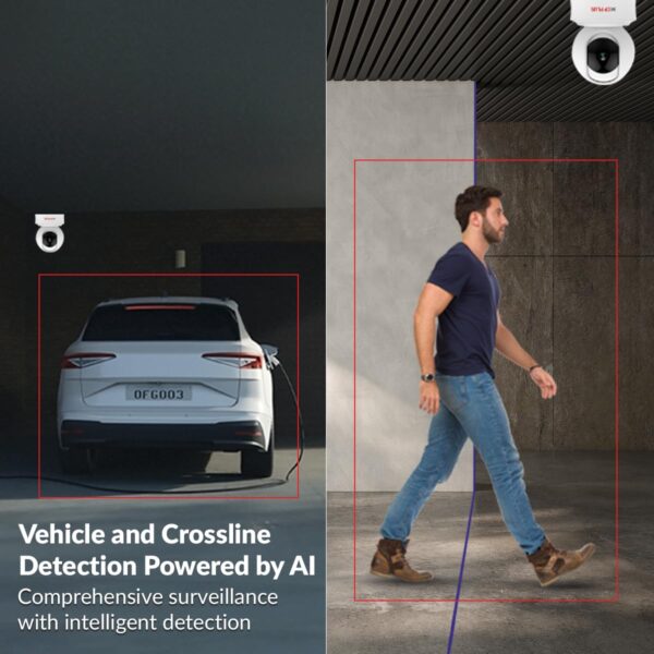 About this item AI Powered 5MP Wi-Fi PT Camera: Experience superior image quality and intelligent functionality with the 5MP AI-powered camera, designed to enhance your security measures. 360° View: Ensure comprehensive surveillance with the 360-degree view, providing complete coverage of your property without blind spots. View & Talk: Communicate directly through the camera with the built-in two-way audio feature, allowing you to see, hear, and speak to visitors in real time. Supports Motion Tracking, Motion Detection & Human Body Detection Alerts: Stay informed with instant alerts for motion, human body detection, and advanced motion tracking capabilities. AI Features Like Vehicle Detection, Cross Line Detection, Edge Alert, Human Shape Detection Alerts: Benefit from state-of-the-art AI features that include vehicle detection, cross line detection, edge alerts, and human shape detection alerts, providing a higher level of security and accuracy.