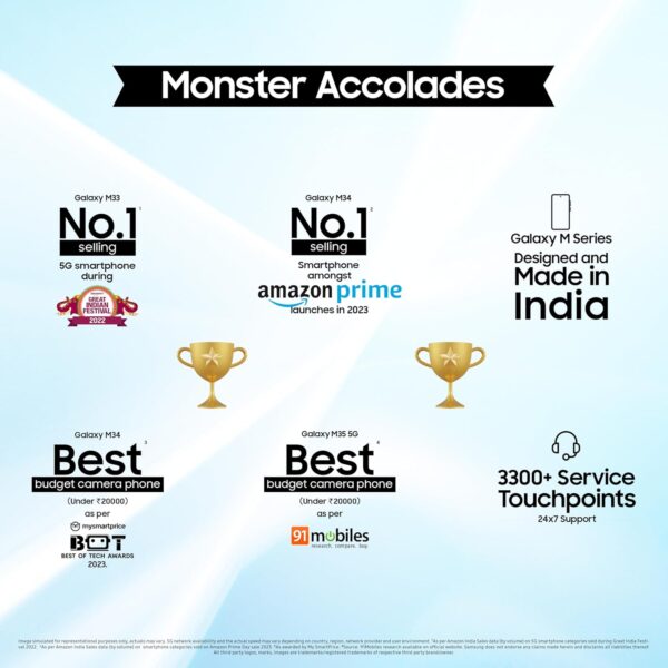 About this item Monster Durability & Display : Corning Gorilla Glass Victus+, 16.83 Centimeters (6.6″Inch) Super AMOLED Display, FHD+ Resolution with 1080 x 2340 Pixels and 120Hz Refresh Rate Monster Processor – Exynos 1380 Processor with Vapour Cooling Chamber | Latest Android 14 Operating System having One UI 6.1 platform | 2.4GHz, 2GHz Clock Speed with Octa-Core Processor Monster Convenience & Security – Samsung Wallet with Tap & Pay | Knox Security | Get upto 4 Generations of AndroidOS Upgrades & 5 Years of Security Updates Monster Camera – 50MP (F1.8) Main Wide Angle Camera + 8MP (F2.2) Ultra Wide Angle Camera + 2MP (F2.4) Macro Angle Camera | OIS & Nightography | 13MP (F2.2) Selfie Camera | Video Maximum Resolution of Ultra HD (3840 x 2160) @30fps Monster Battery – Get a massive 6000mAh Lithium-ion Battery (Non-Removable) with C-Type Fast Charging (25W Charging Support)